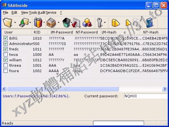 些檔將變成永久不可讀數據.SAMInside則是將用戶密碼以可閱讀的明文分式破解出來.
